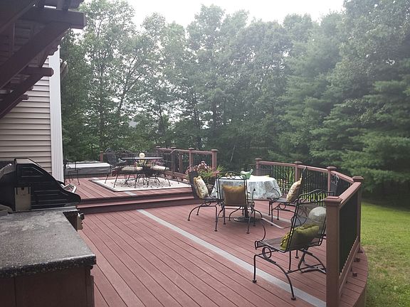 This open concept home boasts a large kitchen with granite countertops, family, living, dining room as well as a half bath on the first floor. The second floor has 4 bedrooms, laundry room and 2 full baths with granite counters, the home also has central vac. and central air throughout. An additional family room is in the basement as well as a huge space for a workroom, aka: man cave. The back entertains four decks including a built in natural gas grill, sink, outdoor refrigerator and an 8 person hot tub. The entire property has an 8 zone irrigation system, supported by a well. The home also has an attached 2 car garage. More pictures to follow!