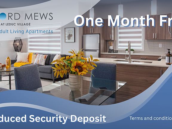 Welcome to Telford Mews, a stunning six-storey luxury (+55) residence offering 133 thoughtfully designed one- and two-bedroom suites ranging from 587960 sq. ft. Located in the heart of Leduc, Telford Mews blends modern comfort with community connection. *Special Offer: 1 Month Free Rent + Reduced Security Deposit! Lease your new suite today and take advantage of this limited-time promotion. Terms and conditions apply.