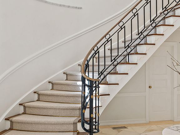 Gated, treelined drive leads to this majestic mid-country estate off of Round Hill Rd. 2.4 acres of manicured landscape surrounds the updated home overlooking a pond. Gracious 2 story entry opens to grand scale rooms w/ custom millwork featured in AD. Large eat in kitchen, dining room and living room all open to the limestone patio with automated awnings for seamless indoor/outdoor entertaining. First floor primary suite; 5 additional bedrooms all with ensuite bathrooms on the second level. Oversized home gym with sauna and steam shower. Two separate family rooms on either side of the house. Relax in the elegant library with wetbar and movie screen or step outside to embrace tranquility by the stunning heated gunite pool and spa all fully fenced and tree-lined to guarantee privacy