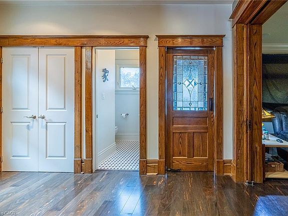 Excellent family home in a location close to downtown. Attractive landscaping with fish pond. Slate front porch leads to a blend of modern original and newer finishing. Chestnut throughout parts of the home along with some classic stained glass windows. Spacious kitchen with abundant cupboards and island with granite counter top. Hardwood flooring. Upper laundry facilities. Relax on the rear deck of this totally charming home.