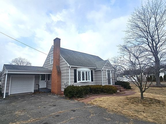 Step into this beautifully updated dormered Cape-style home, offering 1,678 square feet of meticulously maintained living space. Featuring 4 bedrooms and 1.1 bathrooms, this home boasts stunning refinished hardwood floors throughout, adding warmth and character to every room. The inviting living room is centered around a cozy fireplace, perfect for relaxing evenings. A sunroom off the rear overlooks the patio, providing a tranquil space to enjoy your morning coffee or unwind after a long day. The newly remodeled kitchen showcases elegant white shaker cabinets, quartz countertops, and stainless steel appliances. Both bathrooms have been tastefully updated with modern finishes. Additional updates include a brand-new furnace and fresh paint throughout, ensuring a bright and welcoming atmosphere. A 1-car attached garage, along with two driveways, provides ample parking for guests and family. With its combination of classic charm and modern updates, this home is truly a must-see.
