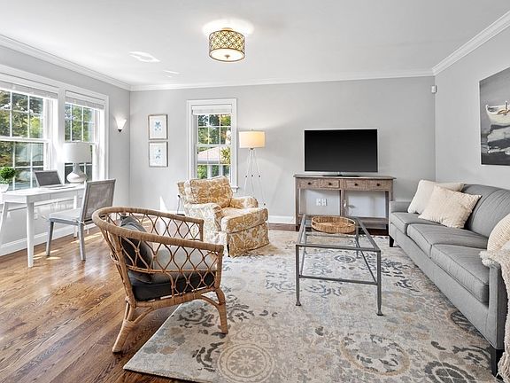 Beautiful colonial just 6 years young, in a fabulous location w/sidewalks to the train in one direction and the commuter boat in the other! Gorgeous white kitchen w/ quartz countertops, large island and stainless appliances including a 6 burner Thermador range. Large dining area w/slider to the back deck OPEN to the spacious family room w/ custom built-ins and fireplace. Second family room that could be a cozy den, home office or play room. Coveted Mudroom with cubbies and laundry complete the first floor. Upstairs there are 4 Bedrooms and 2 full baths including a luxurious Primary suite with beautiful bath and fabulous closets. Spacious lower level with great natural light and a full bath. Terraced back yard with level lawn area and stone wall. GAS HEAT and TOWN SEWER. Pet owners can enjoy easy access to Bare Cove Park across the street. Conveniently located between the Shipyard and downtown Hingham.
