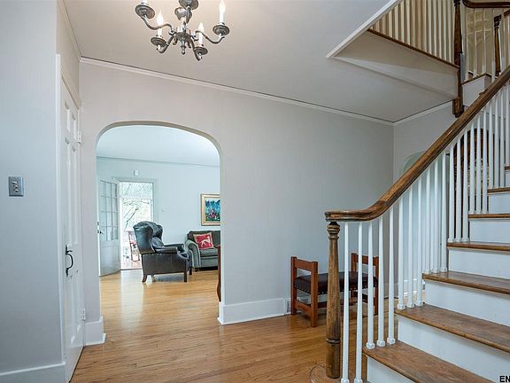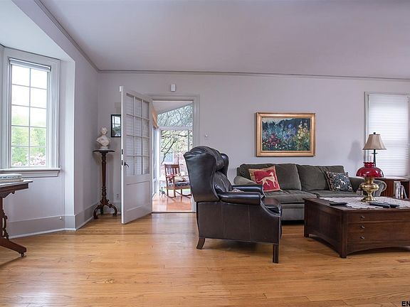 Pristine Colonial. Stunning foyer entry accented in hardwood. This home has only had 2 owners. All updates have kept the original integrity of the home intact. One of a kind in a much desired neighborhood. Hardwood floors throughout, solar heat. Schrock Cabinetry,granite counters, jenaire range . Bright and airy throughout. Custom 15 ft remote retractable awning over slate patio. Heated Better Homes and Garden Sunroom surrounded by perennial gardens.Stamped concrete drive .