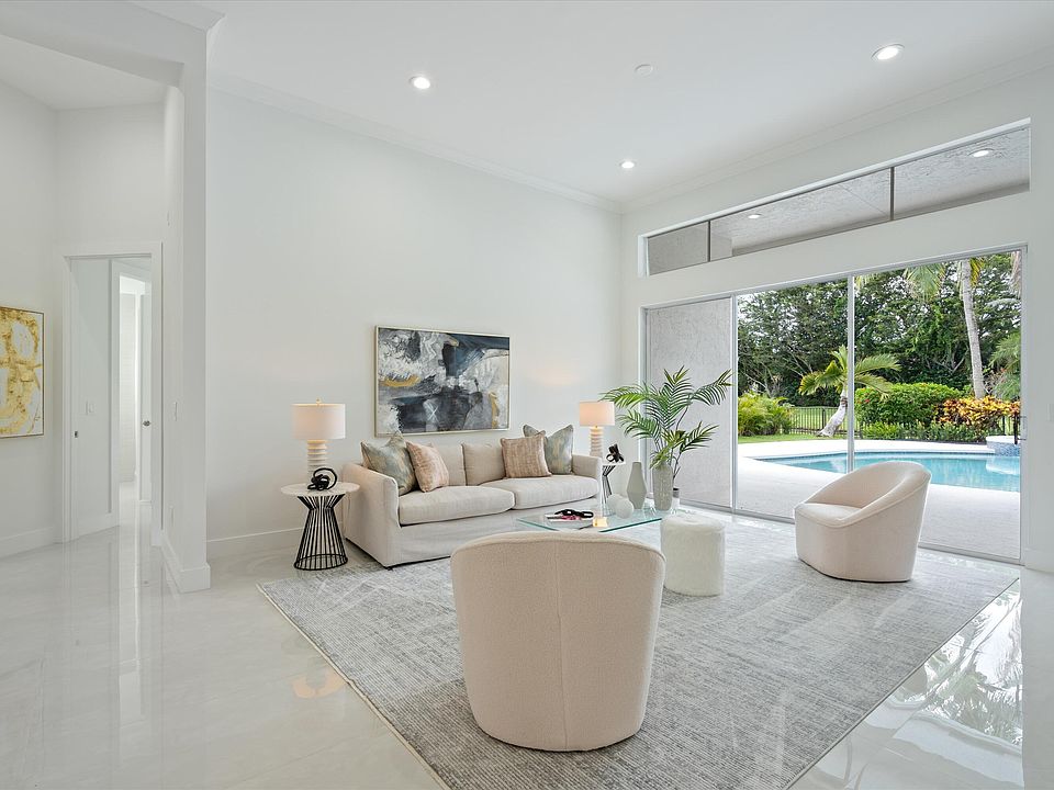 Stylish and newly renovated, modern, bright open one-story floor plan, 4 bdrm 3.5 ba, plus 3 car garage with serene private water and garden views located in Ballenisles Country Club. Clean lines, chic, light filled one of a kind with porcelain floors and quartzite countertops, new appliances, LED recessed lighting, new light fixtures, freshly painted inside and out, new AC's, water heater, 5/2018 roof, built-in closets and many more updates in this exceptional home. The outdoor areas offer tranquil water views, a secluded oasis surrounded by tropical landscaping, inviting pool and spa, perfect for relaxing or entertaining. The coveted neighborhood of Bermuda Bay offers spacious properties with plenty of privacy. Equity Membership required. Enjoy the lifestyle at exclusive Ballenisles Country Club with renovated facilities, 3 spectacular golf courses, state of the art practice range, tennis courts, spa, aquatics center, fitness center, walking and biking, beautiful clubhouse, with a variety of dining options, year-round social events and much more.