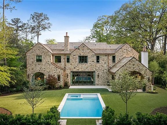 Located in the prestigious Tuxedo Park neighborhood of Buckhead, this 7-bedroom estate is a masterful blend of timeless elegance and modern luxury. Designed with exterior architecture by William T. Baker, refined interiors and specifications by SOURCE, and expertly built by Cole Construction, the home evokes the charm of a classic English manor. A striking fieldstone fa ade, hand-carved limestone accents, and a cedar shake roof lend an inviting, enduring character to this architectural gem. The interior features 12-foot ceilings and blends traditional charm with contemporary flair. Venetian plaster walls, marble accents, and custom wood paneling create an inviting, sophisticated atmosphere. The spacious foyer opens to a cozy living room with a sculpted plaster fireplace and herringbone surround. The chef's kitchen features sleek appliances, brass fixtures, and Kingdom cabinetry, flowing seamlessly into a charming scullery with a checkerboard floor. Decorative plaster ceilings add character to the dining room and primary bedroom, while the primary bath boasts a dramatic barrel arch and a jewel-box freestanding shower. The main-level primary suite also includes dual closets and a spa-like bath. Upstairs, five additional bedrooms, each with marble baths and classic fixtures, offer hotel-like comfort and ample space for family and guests. A playful bunkroom completes the family-friendly layout. The fully finished lower level offers the ultimate in relaxation and convenience, with a media room, bar, gym, sauna, cold plunge, and even a golf simulator. It also features an au-pair suite with a separate entrance, providing privacy and flexibility. The home is equipped with state-of-the-art security, including wired systems and cameras for peace of mind. Phantom speakers are built into the ceilings of the kitchen and family room, and wall speakers are installed on the porch for the perfect soundtrack to any occasion. Outside, the fully fenced backyard is a private oasis with a covered porch featuring a fireplace and stainless-steel gas grill, a sparkling walk-out pool, sports court, and lush landscaping by Land Plus. This estate offers over 1.5 acres of serene, resort-style living, perfect for both relaxation and entertainment.