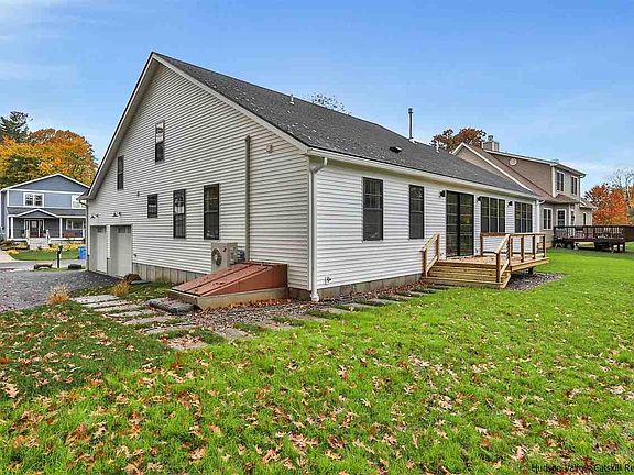 A newly built modern home made for comfort and easy living. This three-bed three-and half bath home includes an open floor plan flooded with natural light, complimented by beautiful hardwood flooring, long windows and 9 ft. ceilings throughout. A custom kitchen with a large island and stainless appliances is set alongside a spacious dining and living area with a half bath and sliders that open to a deck; perfect for summer night enjoyment. The first-floor features a primary ensuite with two walk-in closets, full bath with a walk-in shower. The main floor includes two additional bedrooms, a Jack and Jill bath and laundry room. The second floor features a bonus room with a full bath above the 2-car garage and ample storage space in the walk-up attic. The full basement provides additional living space or storage. Landscaping and a newly paved driveway alongside a quaint front porch make for a welcoming entrance. Located in walking distance to Forsyth Park, Trailways Bus Station and Uptown Kingston's restaurants, shops and Farmer's Market.