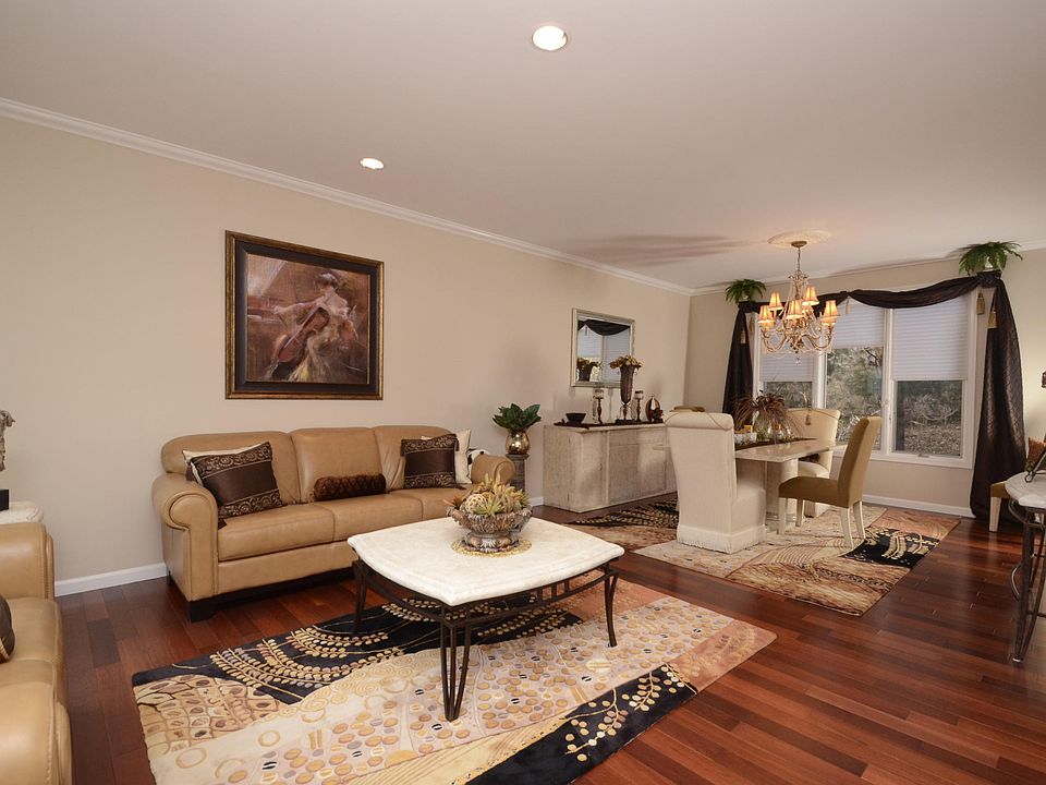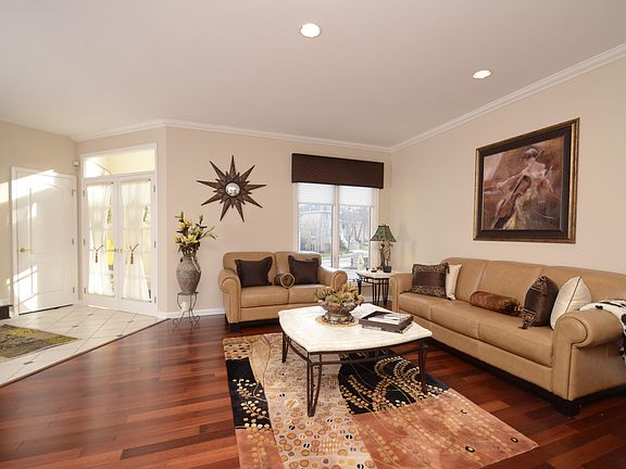 Truly Exquisite & well maintained Carrara backing to tranquil woods! Enjoy the space and elegance in this magnificent home with 4 Bedrooms & 3.5 baths. Countless upgrades include Gourmet Kitchen w/granite countertops, Stainless Steel appliances, two story Great Room with Gas F/Place, decorative moldings, L/D Rm w/Brazilian cherry hard flrs, pocket doors & much more. Spacious M/Suite with extra closets, lavish bth Rm with newer counter tops. Newer carpets, recess lights throughout. Full F/ lower level with full bth, perfect for entertaining.Furnace was replaced 2014,A/C in 2013, newer Hot water and front steps. Community offers pool, tennis, basketball courts, clubhouse, & playground. Mins to GSP, trains, great shops and parks, 12 mins to NY Ferrry, exceptional schools.
