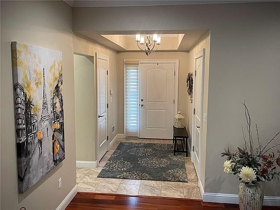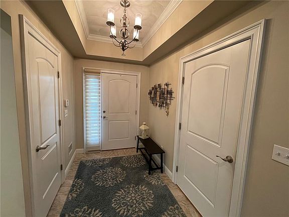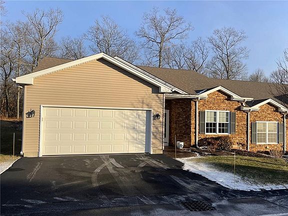 Pristine One Level Condo in 55+ community. Inviting tiled entry foyer with tray ceiling Amazing interior with fully upgraded custom kitchen which features cherry cabinets with matching crown molding , slide outs with a pantry cabinet , detached island with rain forecast granite , matching kitchen lighting , double ovens with induction cooktop beneath stylish stainless steel hood..tiled backsplash ..under and over cabinet lighting and stainless appliances……wet bar includes wine fridge ,cabinets with granite backsplash ,bronze faucet at sink and cabinet lighting…..dining area includes 9 foot slider with retractable phantom screen leading to outdoor patio.. Newly Redone living room with cozy electric fireplace, grass cloth walls, floating shelves… interior also includes custom drapes window treatments. Gleaming tiger wood engineered hardwood floors and crown molding throughout. Custom built shower in second bathroom…Primary bathroom included soaking tub and shower , primary bedroom includes wallk in closet , slider leading to deck with phantom screen, grass cloth wall... full attic with flooring for tons of storage/ pull down stairs. Private backyard setting with serene view ……2 car garage with epoxy floor…….Close to all amenities…. A must see!