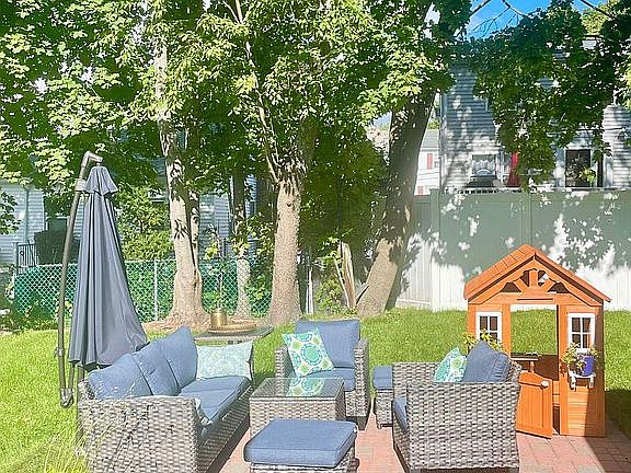 Bright and spacious 3 BED 2 BATH with large fenced in back yard. The home features hardwood floors throughout the first floor and a carpeted, sunny 3 season porch. An eat-in /open kitchen design with updated appliances including a dishwasher and gas stove. 2 even sized bedrooms with closets and a 3rd bedroom with a walk-in closet basement level. A nicely sized living room that gets lots of sunlight also with gas fireplace along with another living space in the basement. Garage, driveway and on street parking. Just 100 YARDS from bus Route 35 and 12 minute walk to Commuter Rail. Laundry (washer replaced 1 month ago). Basement space has independent entrance (in-law apt) and includes 1 bedroom, 1 bathroom, kitchen, living room, separate laundry and storage area MAYBE SUBLET. NO smoking. Small pets allowed. 8 Month minimum term subject to owner approval of credit (must be good+), references, deposit and employment verification. Application fee of $35. Basement space has sublet for $1450 in the past.