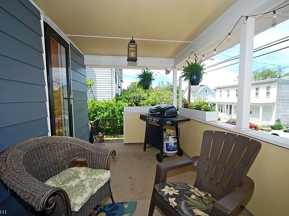Charming 2 bd Colonial with 2 car garage has so much character and lovingly maintained. Recently painted exterior, inviting covered front porch, pumpkin pine floors in cozy living room and kitchen, breakfast nook with built-in high top table, and sun filled family room with many windows, skylights and built-in shelves. Jersey winder stairs take you to 2 pass thru bedrooms and walk up attic offering plenty of storage space. Basement has laundry area, utilities and walks out. Spacious backyard and side yards plus a big 2 car detached garage accessible from the alley. Easy commuting near I-78 and close to shopping/eateries. Come and see this one before its gone!