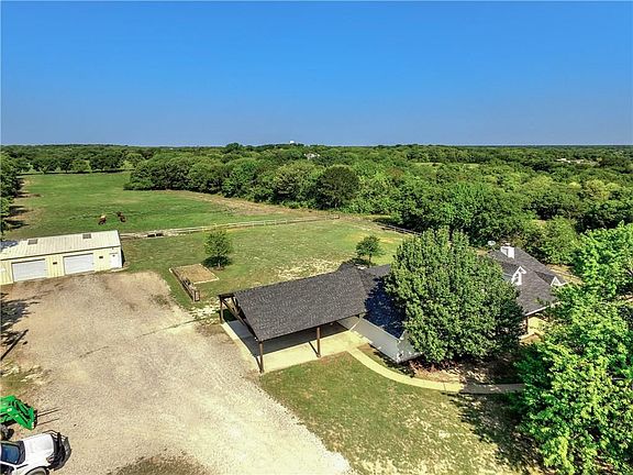 Beautifully maintained custom home on 10 acres in exemplary VAN ALSTYNE ISD. Newly remodeled in 2017 to include updated kitchen with granite and stainless steel appliances, oversized mud room with soft close cabinets, room for full size fridge and freezer and new ceramic tile flooring, 30x30 porte cochere, new roof & energy efficient water heater, and beautiful new exterior paint. Gorgeous views from extended covered porches on both front and back of home. Heavily treed for privacy. Acreage is fenced for livestock and holds a 30x40 barn for extra storage. Enjoy growing your own vegetables in the existing garden and watch the sunset by the outdoor fire pit in the evenings. Currently under Ag exemption.
