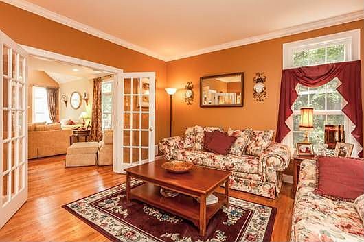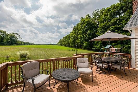 A stunning young thing, this grand Colonial on a quiet dead-end road offers 3392 square feet. The open floor plan is just right for your growing family with 4 Bedrooms and 3+ bathrooms. The kitchen offers a place for everything with multiple work zones and a stepped island with breakfast bar, granite, and shining appliances. The gracious dining area awards private views of your own sweeping lawn plus 30 acres beyond of protected land-home to precious wildlife. Enjoy the quiet and views from your deck, easily accessed from the kitchen slider for outdoor meals. Steps from the kitchen, the great room with cathedral ceiling and stone fireplace will be the hub for relaxing with family. Upstairs is a fantastic bonus room for work or play with striking palladian windows, plus 4 large bedrooms including the master with walk-in closet and bath with spa amenities. You will ADORE the finished lower level with full bath for media-mania, parties, sleepovers or working out. Considerate details and infinite style are yours throughout with hardwood floors, archways, columns, balcony, crown molding, and wainscoting. And your practical needs are covered with 3-car garage, central air, 2nd floor laundry, walk-up attic, great commuting location, and so much more. Never move again!