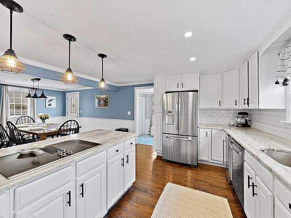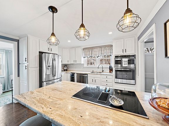 - Features: Flooring - Hardwood, Dining Area, Countertops - Stone/Granite/Solid, Countertops - Upgraded, Kitchen Island, Cabinets - Upgraded, Open Floorplan, Recessed Lighting, Stainless Steel Appliances, Wine Chiller, Lighting - Pendant, Crown Molding