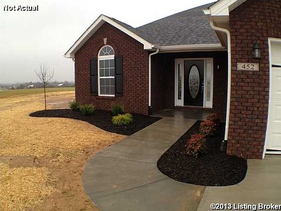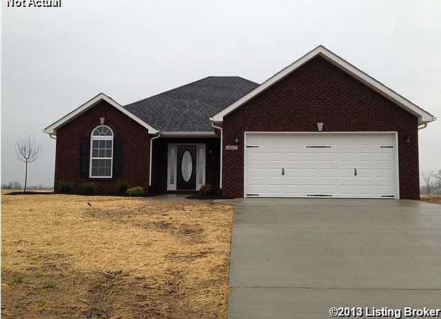 Home is under construction. 1 ACRE LOT!!! Gorgeous brick/vinyl ranch home sitting on a beautiful 1 acre lot in Shepherdsville just down the road from I65/Heritage Hill/Zappo's/etc. Make sure to watch the real walk through virtual tour on youtube. 3 bed 2 full bath home. Home features Vaulted ceilings in living room, recessed lights in kitchen/living room, gorgeous eat-in kitchen, stainless steel appliances, beautiful ebony cabinetry accented with crown molding and raised corner cabinets, 2.5 car attached garage, patio, master suite with attached full bath and walk-in closet, pergo flooring in living room, ceiling fans, poured concrete drive, and much more. This is a must see. You will notice alot of things this builder has added that you don't usually see at this price point ie: trey/vaulted ceilings in spare bedrooms, stainless steel appliances, etc. All of which are usually add on worth thousands of dollars. Hard to get a 1 acre lot and a +1400 sq/ft home that is new construction for under $150,000, come check it out.