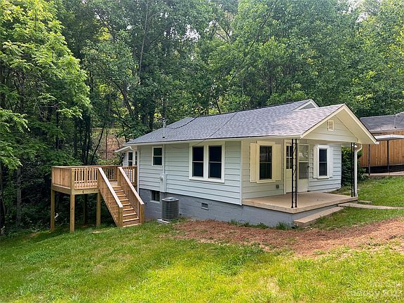 Welcome home to this perfectly, modern, open floor plan, Bungalow. Conveniently located in Candler, only minutes from Smokey Park Highway. This 2 bedroom 1 bath is exactly what you are looking for. This home offers an inviting back deck, cathedral ceilings in the kitchen and living area, stainless steel appliances, white, soft close cabinets, solid surface countertops, with a sizeable laundry room. The primary bedroom has a spacious walk-in closet. The bathroom is centered between the 2 bedrooms for your convenience. Brand new roof and  a covered carport.