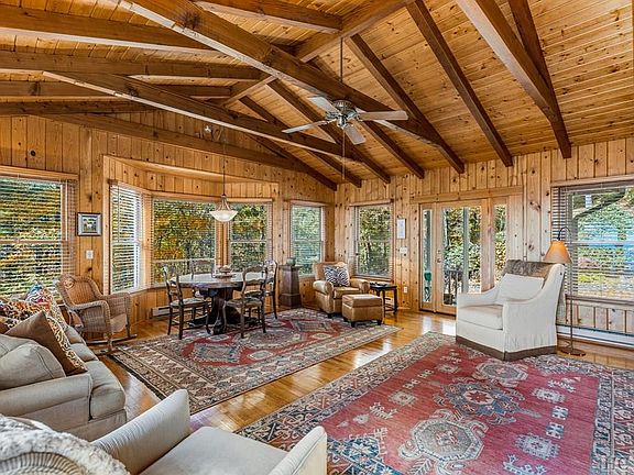 The short gravel drive through the woods definitely drops your blood pressure. Then immediately as you enter the residence, it really grabs you! That's because "Highlands Character" abounds throughout the entire cottage/cabin with wood finishes, vaults, and beams. There are multiple views long-range toward Blue Valley from most of the rooms. The overall layout and footprint says "bring the whole family for Thanksgiving" thanks to a family room, kitchen, & wood-burning fireplace serving as Grand Central Station, and these areas immediately transition to the surrounding outdoor decks which create the perfect indoor/outdoor living balance. A master-bedroom on the main level and "viewing" side of the residence stands alone, and there's three Guest Suites on the lower level for privacy. The three separate indoor living areas are unique and allow for your entire crew to watch a football game in one, and a good movie in the other without overlap. Two of the three have large wood-burning fireplaces. For you investment-minded Buyers, this property will make an excellent vacation rental if you're so inclined, and is located just outside the Town of Highlands boundary. They say "location is everything", and this one is close to town (5-7 minutes), close to Glen Falls (5 minutes), and close to Highlands Country Club (5 minutes). In the end, the perfect destination for a full time resident, vacation home, or rental investment. On your mark, get set, GO! Start living the "Highlands Dream" right away!