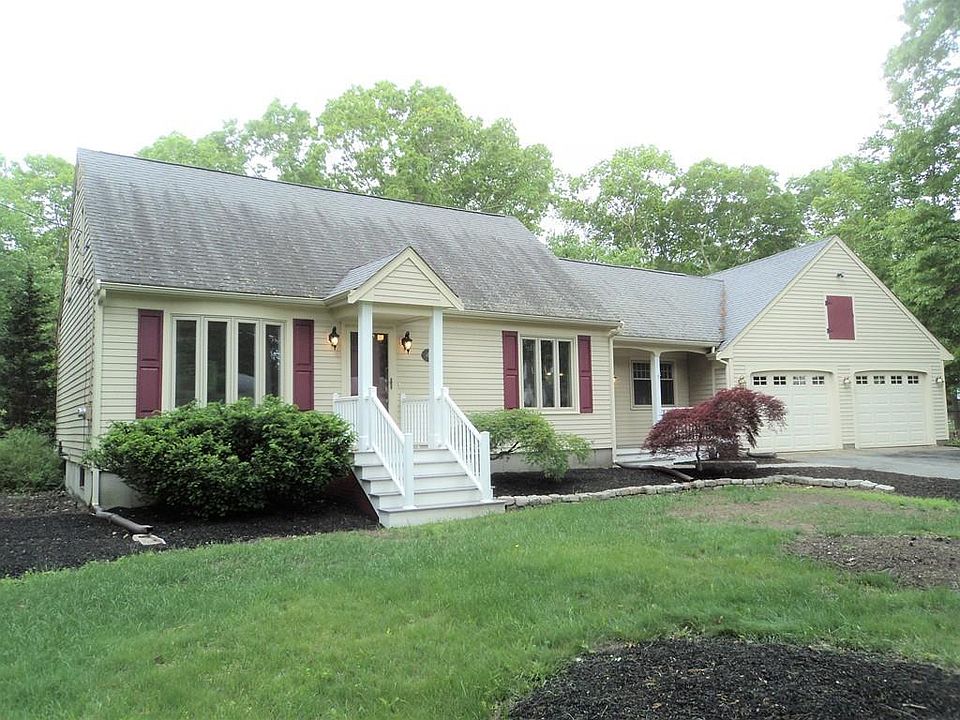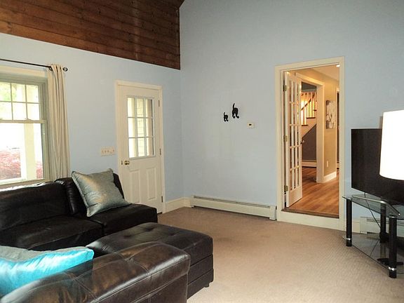 CLICK THE BLUE UPPER RIGHT "V" ICON FOR THE 3D VIRTUAL TOUR!! Classic Cape Cod style, updated 7 room, 3 bedroom, 1 1/2 bath home in quiet neighborhood setting. Kitchen boosts granite counter tops, center island, stainless steel appliances with sliders to a 2 tier brick patio surrounded by stonewall. Sunken family room with cathedral ceilings also leads to the beautiful, large nearly 3/4 acre fenced in yard. Dining room with large window & front to back living room with wood stove and bow window on 1st floor. Master bedroom upstairs has a lovely view of back yard to wake up to. Half bath on 1st level and full bath on 2nd level which have both been updated. 2nd floor has 2 more bedrooms. This home has vinyl planked flooring and new wood molding throughout, newer boiler and a newer 7 year young septic system. This is a great family home in a great family neighborhood!