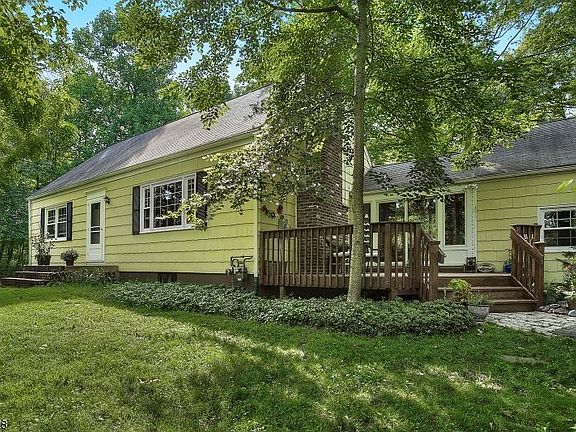 Private and convenient setting on 1.7 +/- ac. Inviting Cape cottage with high ceilings, 1st floor MBR option, ample closet space, newer windows, HVAC, & paint, hardwood floors. Encl heated breezeway adjacent to 2 spacious decks and attached 2-car garage w/ unfinished insulated loft room above. Spacious LR has wood burning fireplace with insert & mantle framed by built-in shelves. Tiled full bath and 2 bedrooms with large closets (one BR now used as laundry rm). Stairs to 2nd level and 2 large BRs and one full bath with direct access from the 2nd MBR. Full basement, laundry and wash tub, toilet, workbench, exterior door & options for additional finished living space. This well located property offers nearly 1 ac +/- of its own natural woodlands.