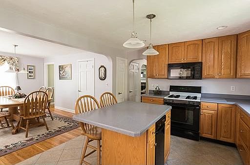 Picture Perfect Cape in established neighborhood close to Daniel Webster Elementary...Beautifully updated oak cabinet kitchen w/corian counters, breakfast bar & island for plenty of work space...Open floor plan to dining room & Breezeway w/slider to deck overlooking the private rear yard. ..Spacious living room w/ fireplace...Plus a 1st floor bedroom & full bath w/shower complete the 1st level... The upper level consists of 3 bedrooms & full bath w/tub... Lots of built in's to accommodate all your storage needs...Exposed Hardwood floors on 1st level, hardwood under wall to wall carpet up... The LL Family Room has excellent space for entertaining w/built in bar & laundry set up around the corner...Newer Roof, Windows & Siding...Ready for a new family to move in and enjoy.