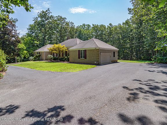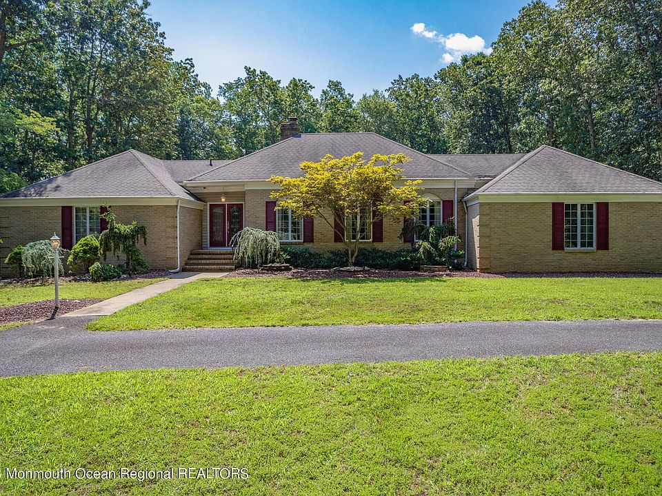 Rare opportunity to own a sprawling custom ranch set back on 2.34 acres in Millstone Twp. Original owners take pride in this well maintained home. Truly unique floorplan that boasts 10ft ceilings with crown molding throughout main living areas. Expanded living room with large custom windows for plenty of light. Updated kitchen with custom cabinetry, quartz countertops, and top of the line appliances. Oversized walk out basement with high ceilings. Natural gas brick fireplace located in the den. Large deck leading to in-ground pool with reinforced 10'' cement walls & safety ledge. Gas hookup for pool heater next to filter. New well as of 2007. HVAC replaced in 2021. Oven is electric, stovetop is gas. Property being sold AS-IS. Seller will provide 1 year Home Warranty at closing.