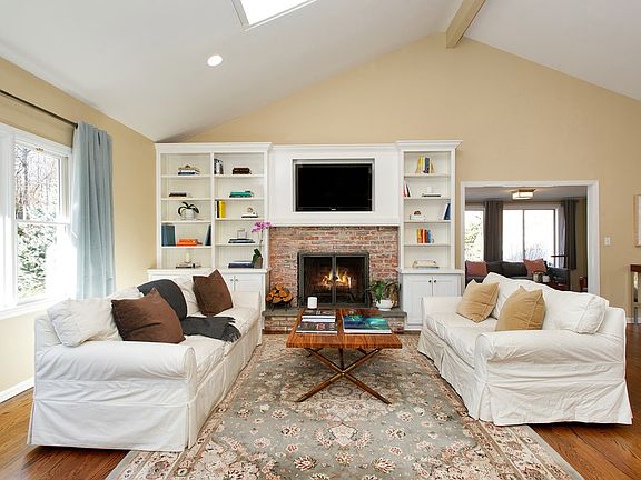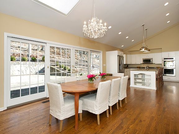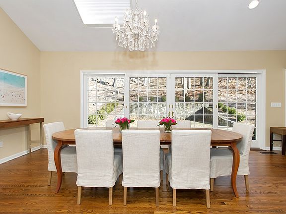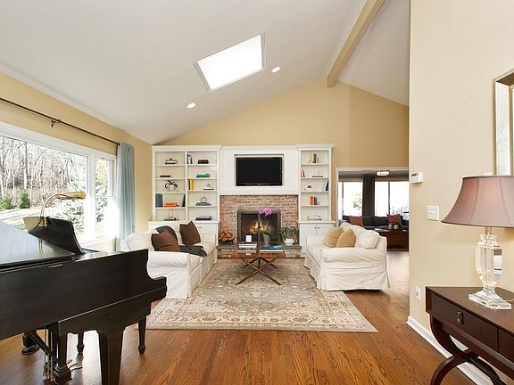 Move right in to this airy and bright home with a spacious and open floor plan. It features very high ceilings, clean lines and many windows overlooking a very private setting. The great room always gets natural light from the skylights and there is a handsome fireplace that is flanked by built-in bookshelves and cabinets. There is a wonderful sun room which opens out to a flagstone patio and updated heated pool. Gourmet kitchen and dining area with vaulted ceilings. 3 bedrooms on the main floor make for easy living. Master bath and hall bath have been recently renovated.The lower level has a large family room with possible nanny quarters, full updated bath and large laundry room. 2 car attached garage and whole-house generator. Extensive new landscaping throughout 2+ acre