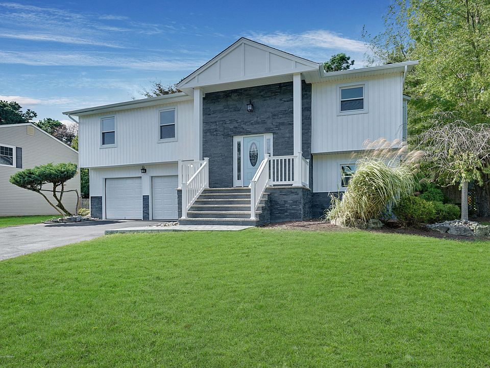 This is it! Gorgeous Home Completely Updated inside and out with over 2,000 Sq Ft...4 Bedroom/2.5 Baths and 2 Car Garage with spacious and private yard! Features beautifully refinished hardwood floors, open floor plan, new kitchen with center island, granite counter-tops and stainless steel appliances and subway tile back splash. Spacious bedrooms and master suite with an amazing full bath en-suite, completely re-done and custom shower! Lower Level features bedroom, bathroom and family room with cozy fireplace, great for guests! Plus an incredible yard with multi level decks a tiki bar refinished with stone and tree house with new siding and stairs and plenty of room for a pool if desired! Close to parkway, train station and the best beaches at the Jersey Shore!!!