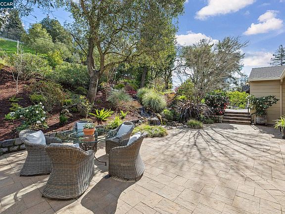Fabulous 2-story home located in Charles Hill neighborhood is ideal for family living boasts large living and dining rooms, eat in kitchen, spacious bedrooms, private office, amazing gardens/views. Main level includes formal living/dining rooms w/hrdwd floors, large picture windows, fireplace & views of the gardens. Heart of the home lies in eat-in kitchen: white cabinets topped w granite, double ovens, gas cooktop, dining space. Adjacent is the study & full bath; ideal for guests & work from home. Primary bedrm, boasts a walk-in closet, views, & offers quiet retreat. Additional bedroom & large bathroom with a tub & stall shower complete main level. Lower level offers 2 spacious bedrooms & bath, cozy family room w fireplace, & large slider w access to garden. Spacious laundry room large enough for gym/office. Highlights are undoubtedly the spectacular gardens, designed by Garden Lights. Front gardens exude charm & privacy, mature trees, lush perennials & stone patio w beautiful waterfall. Lower level gardens feature stone patio w circular design, sprawling lawn, mature plantings & veggie garden planters. Japanese Maple and stately Oak trees add to natural beauty of the home. Close to town & commute routes & hiking trails. Top Rated Orinda Schools.