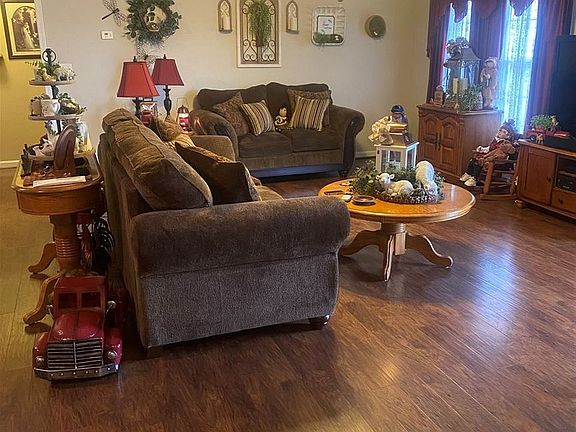 Beautiful home in Sonora, this home as open/split floor plan which includes a large master suite, 2nd and 3rd bedrooms are large enough for queen size furniture and open kitchen/living room. Covered front porch and back deck make this home fun for entertaining or just sitting and relaxing. This home has a large 2 car detached garage, shed and fenced back yard. All of this on .79 acre lot within a short drive to Louisville, you can also be on the lake or visiting Mammoth Cave within minutes. Pride of ownership definitely shows in this home. Set your appointment today to view and make yours. Added new AC Heat pump unit in Aug 2020. New 8x10 deck in Aug 2021. Replaced the garage roof shingles Mar 2023.