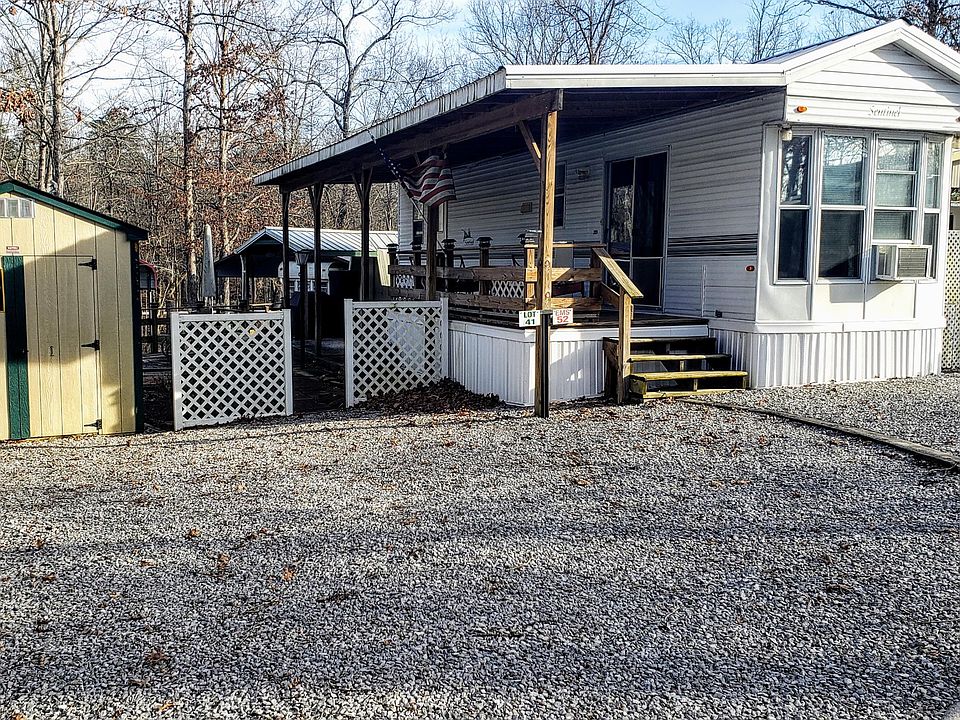 Resort RV Resort living! Come experience Deer Run RV Resort offerings Which include several amenities: pool, Chapel, Lake, kayaking/ canoeing, fishing, basketball court, tennis courts, playground, Rec Hall, and General Store. Model, lot, two Masterbuilt storage sheds, and Furnishings included in sale. Features covered porch with sitting area and outdoor picnic space with fire pit. 1 bedroom and 1 full bath. Plenty of space for extra sleeper sofa. Two 30 lb propane tanks, water tank, 50 amp service. Crossville, Tennessee is home to great wildlife, RV Resort living, retirement communities and is the golf capital of Tennessee.
