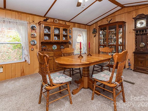 Immaculate home in wooded terraced setting leading down to Arnold Branch. Great home for full-time residence or as investment long term or vacation rental property. Two bedroom, two bath spacious single wide with large living room with gas log fireplace, sunroom and screened porch. Easy access ramp leads up to the back door. Detached two car garage with large workshop in back. Another feature is a storage unit for all your tools. Enjoy the serenity in this private and convenient location close to downtown Franklin. Furniture/furnishings are negotiable.