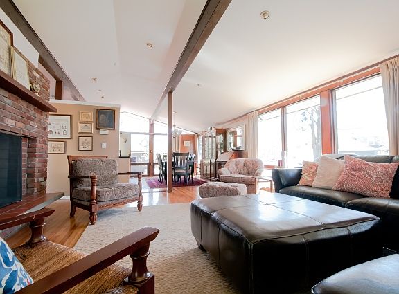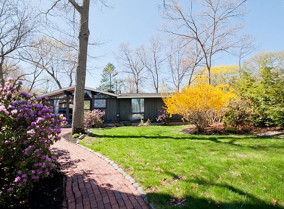Beautifully updated, this Augie Schaeffer designed contemporary ranch is bright & airy w/ open concept living areas, vaulted ceilings, large brick fireplace and floor to ceiling windows. Newer kitchen w/ gorgeous granite counter tops, SS appliances, double oven, and many extras! Brand new bathroom features stunning marble floors & counter top, double vanities, Kohler fixtures and tiled bath. Finished lower lvl includes family room with 2nd fireplace and walkout, laundry area including cabinets, mop sink and counter tops, extra living space perfect for a playroom, office, or workroom. Home is nestled among trees and landscaping, set back from the road. An oversized garage is attached to a storage area and a screened in porch. Tiered brick patio leads to backyard with hot tub. Conveniently located less than a mile from the commuter rail and a few minutes from the highway! This home is truly a must see!