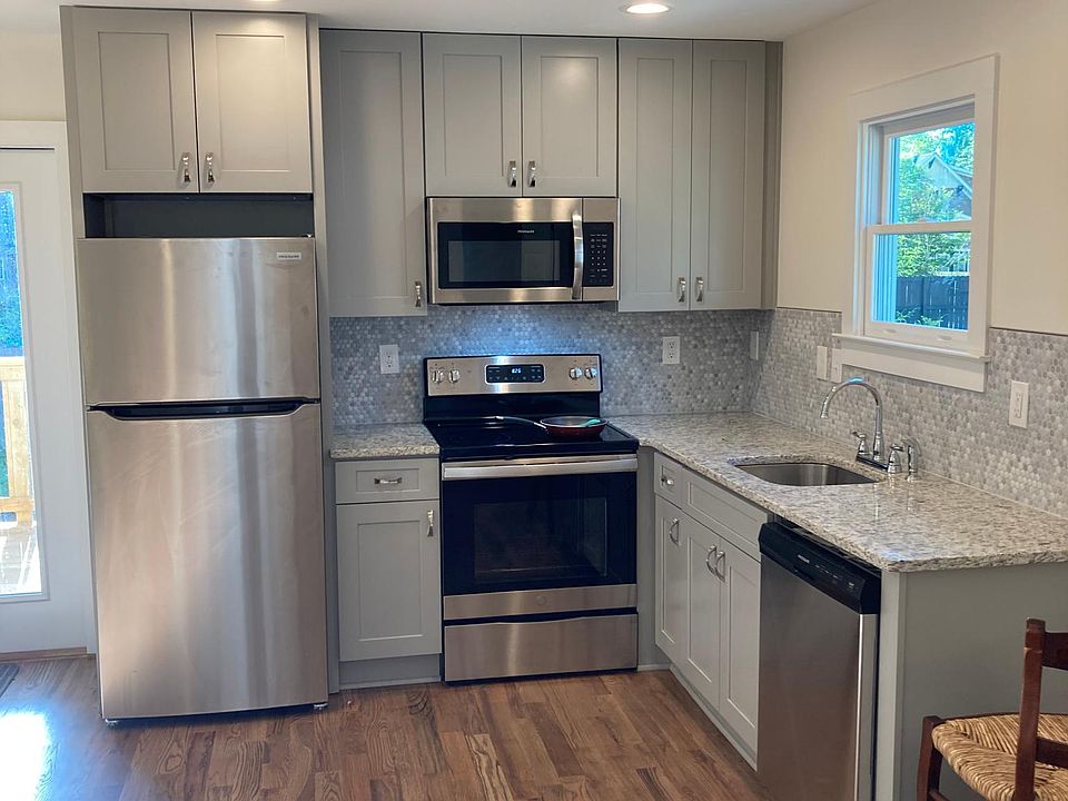 One year new, beautiful carriage house studio with full kitchen and bath. Peaceful, private and ideal for one person, with views of the tree tops from every window. Separate entrance off of 8' x 8' balcony overlooking backyard. House is located on Gilliam Park and the PATH trolley line and on the bike route to the Belt line. Quick bike ride to Krog Street Market, Downtown Atl, and Downtown Decatur, one mile walk to Edgewood Candler Park MARTA. Quiet street with friendly neighbors, lots of dog walkers and plenty of parking. All utilities and internet included in rent. Absolutely no cigarette smoking. Owners live on-site with a dog and two cats. House and carriage house do not share walls. Please note there are no washer/dryer connections available. Accepting applications now. One year lease. Water and electricity included. Absolutely no smoking. No pets.