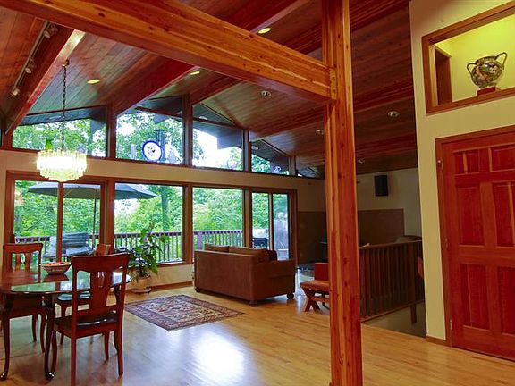 This gorgeous, light filled Lindal Cedar home with seasonal Catskill Mountain Views is privately sited on a 9.02 acre parcel. The two story windows, glass all season sun room, Cathedral ceilings with exposed beams and open floor plan create a wonderful sense of brining the outside in. In addition to the bedroom and bath on the main level there is a master bedroom suite, additional bedroom, bath, laundry area an office on the lower garden level. This ground level floor opens to the back yard. Brokered And Advertised By: Paula Redmond Real Estate, Inc. Listing Agent: Linda Lindsay