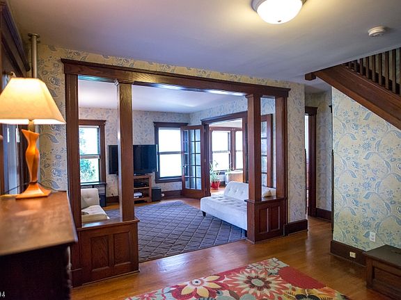 Walk to Downtown! Vintage Colonial, entry foyer, beautiful details & woodwork, stained glass window, screened porch, hardwood floors, french doors & fireplace, built in kitchen pantry, lots of space ! Updated 200 amps electric, new patio, new gas boiler & hot water heater, and much more ! AHS Home Warranty included.
