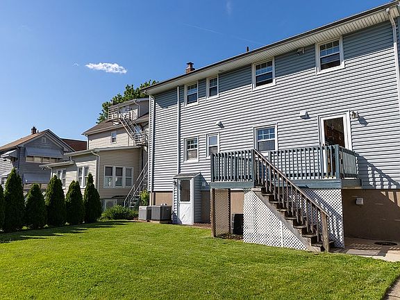 Large 2 family home on Quiet Residential street in desirable Village of Ridgefield Park. Each unit has identical floor plan with 3 bedrooms, large living room, eat in kitchen and full bath. Beautiful refinished hardwood floors throughout. Each unit has Central AC and all separate utilities. 1st Fl has fully finished basement with summer kitchen and full bath. Great sized 2 car garage with off street parking and extra storage space that has Washer/Dryer hook ups for both units. Nice size private yard with patio and oversized storage shed. Many upgrades throughout.