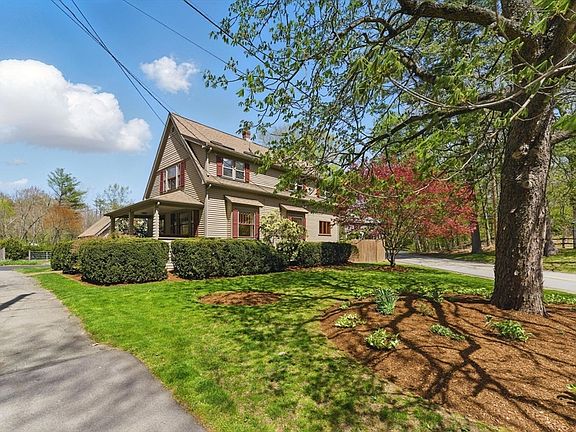 Welcome to Homeport—an enchanting 3BR/2BA village colonial on 1.47 sunny acres in the heart of Wayland. Set at the corner of Concord & Plain Roads, this turnkey home offers high ceilings, detailed millwork, and large, light-filled rooms. The spacious eat-in kitchen features a wood-burning stove and opens to a side deck and yard—perfect for indoor-outdoor living. Enjoy a classic front porch for relaxing, plus a private porch off the primary bedroom with office nook. Two barns with 7 stalls, garden shed, riding ring, and room to garden or keep animals. Two-car garage with potential ADU/office above. Close to town center, conservation trails, Boston, and major routes.