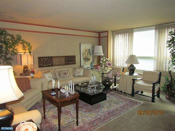 Rarely offered beautiful 2 bedrm, 2 bath apartment in The Fairmont. One of the most prestigious high rise buildings on the Main Line. Great convenient location. Minutes from 76 Expressway and 10 min to Center City Phila. Close to shops and restaurants. Open floor plan with living room and dining rm. Balcony is easily accessible from the living rm. Eat-in Kitchen with wood cabinets. Master bdrm suite w/ built-ins and lots of closet space. Built in closets and storage throughout apt. 2nd bedrm w/ built-in book shelves. 2 nice bathrooms. The Fairmount has 24 hour security, 24/7 maintenance, pool, tennis court, fitness center, 1 inside underground parking space, car washed twice a month, library, fitness equipment, and social activities. Condo fee is $845.17 plus monthly cable charge of $44.20 plus a capital reserve fee of $220.44 every month plus electric that fluctuates each month.(total est $1137 monthly)