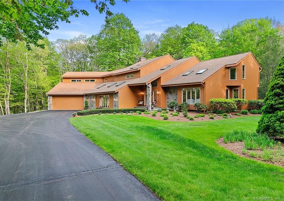 This 5 bedroom home is nestled on 2-acre lightly wooded lot with mature specimen trees, beautiful seasonal gardens & plantings. A babbling brook with a waterfall runs alongside the driveway brings you to this private and peaceful setting. First time being offered, this builder's own home has been lovingly maintained and cared for. This custom designed contemporary features expansive spaces ideal for family gatherings and entertaining. A covered front porch leads to a double height entry which opens to a sun-filled living room featuring teak flooring and a soaring ceiling with skylights. The dining room with dentil crown molding offers a formal space to enjoy holiday meals. The well designed kitchen provides ample space for meal preparation, a center island w/cook-top, pantry storage and a dining area to enjoy casual meals. The family room with a wood-burning fireplace provides a comfortable gathering spot to relax and unwind after a day of work or play. There's an additional room off the mudroom with access to a full bath which can function as a den or recreation room. A home office and powder room with laundry area rounds out the main level. Finished space above the garage with full bath and separate access from the mudroom as well as second floor, ideal for an au pair or guests. All of the bedrooms are found on the second floor, including the spacious master suite which features cathedral ceiling w/skylights, walk-in closets, full bath and a cozy wood-burning fireplace. The lower level offers an additional -- SF of finished space. Enjoy BBQs and outdoor entertaining on the expansive TREX deck which steps onto a professionally landscaped level backyard surrounded by lush lawns offering ample space for summertime fun and play. Additional features include central A/C, irrigation system, central vacuum, and a heated 2-car garage with storage space. This spacious and inviting home offers a peaceful setting within a well established neighborhood. Time to start creating your own memories!