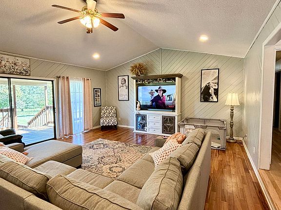 5 bedroom 3 bath brick home sits privately on a two-acre hillside. The covered front porch offers beautiful views of pasture and mountains. The upstairs living room has vaulted ceilings, fireplace, and hardwood floors. An eat in kitchen with updated appliances and an additional dining room are waiting for holiday parties. The large master suit is complete with a walk-in closet and it's on private entrance to the back deck. You will find two additional bedrooms and a bathroom on the main floor. Downstairs opens up to an additional living room with the possibility of a kitchenette. 2 additional bedrooms are also located downstairs. Sliding glass doors open to an above ground pool and deck.