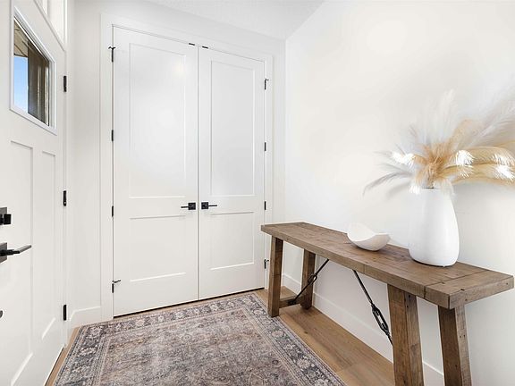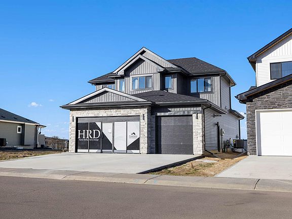Welcome to this beautifully crafted 2,344 sq ft home by HRD Homes, located in Deer Park Estates. This 1.5-story home offers an inviting open-concept main floor with a luxurious main-floor primary suite, and two additional bedrooms upstairs, making it perfect for families. The heart of the home is the gorgeous two-toned kitchen, featuring a maple island, a large walk-in pantry, and a custom plaster hood that complements the stunning plaster fireplace with a maple mantle in the living area. The primary suite is a true retreat, boasting a walk-through closet and a spa-like ensuite with a soaker tub, double vanity sinks, and a private water closet. Additional highlights include a heated triple car garage with both hot and cold hose bibs, ensuring convenience year-round. This home combines thoughtful design, craftsmanship, and functionality, making it a must-see!