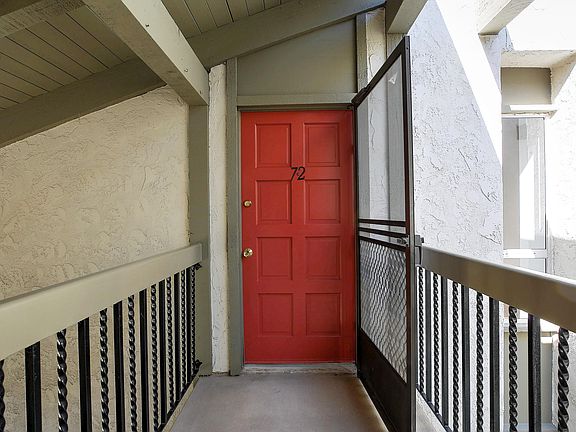 This Sunny home checks the important boxes: South Facing, End Unit, Upstairs, Clean, Bright, Move-in Ready! Closet Organizers in bedroom, Fresh Paint, a New Frig, Windows Washed, Floors all Cleaned. Balcony overlooks the Sunbathing area, Pool & Spa. Designated Parking spot is right next to the breezeway entrance to #72. Birds sing in the surrounding trees and beautiful landscape. Laundry room is chock full of washers and dryers; allowing you to do a One & Done hour for All your items!