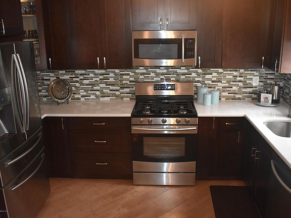 As you walk into this immaculate home, you can't help to notice the beautiful hardwood floors, crown moldings, high hats and new banister. The renovated kitchen boasts gorgeous white quartz counters, wood cabinets and tile floor and leads into a maintenance free trex-decked yard with a pool including a custom fit safety gate. Full bathroom and half bathroom were just completely renovated! All 3 bedrooms are spacious and immaculate with nothing to do but drop your bags. This home also has a full finished basement with tiled floor, ¾ bath and separate office space. Alarm system is installed. Truly there is nothing to do but move in!