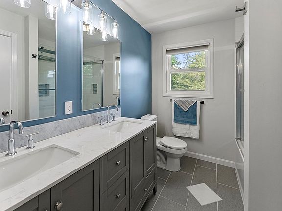 - Features: Bathroom - Full, Bathroom - Tiled With Tub & Shower, Closet - Linen, Flooring - Stone/Ceramic Tile, Countertops - Stone/Granite/Solid, Countertops - Upgraded, Enclosed Shower - Fiberglass, Double Vanity, Remodeled, Lighting - Sconce, Lighting - Overhead