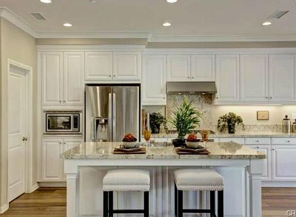 This stunning Stonegate home is beautifully upgraded and features an amazing kitchen with gorgeous granite counters, tons of cabinets, a walk-in pantry, stainless steel appliances including a 5-burner gas stove, and a spacious center island with breakfast bar seating. The downstairs has hardwood floors throughout, custom window coverings, recessed lighting, crown molding, and a popular open floorplan with a great room feel. Upstairs are three bedrooms plus a media niche. The spacious master bedroom has plantation shutters, blackout blinds, a walk-in closet with built-in organizers, and a spa-like master bathroom that has cultured marble counters and beautiful accent tile work. The backyard has custom hardscaping, is plumbed for a built-in fire ring, and has lovely mature landscaping. This home has two Nest thermostats and a built-in media desk in the family room for added convenience, and is walking distance to Stonegate elementary, parks and HOA amenities, shopping, and the Jeffrey Open Space Trail.