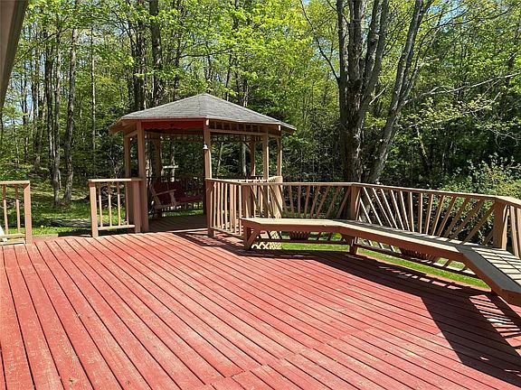Nature Lovers Paradise! Log Sided Ranch (upgraded Double Wide) Home on 2.89 Private Acres, 3 Bedrooms, 2 Bath, Totally Remodeled Eat In Kitchen with Island/Snack Bar and New Appliances, Large Front Living Room with Cathedral Ceilings and Coal Stove/Fireplace, Master Bedroom Suite with remodeled bath, walk in closet, First Floor Laundry, New 6 Panel Doors, Tree Fort, Great Hunting, Trails for Recreation, Pond, Large Deck on Back of House with Gazebo overlooking Back Yard and Pond. 2 Car Detached Garage with Workshop, Newer Shed.