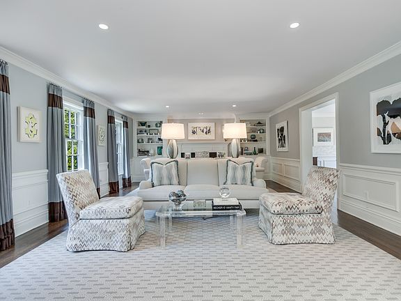 The home was completely rebuilt in 2020-2021, expanding the footprint of the first and second floors and completing an extensive renovation of the basement for social and gym space. The home includes new HVAC, new wiring, new plumbing, and state of the art audio/video, and Lutron lighting system. Belgian block lines the graceful driveway to the front entrance. The mahogany door opens to the broad center hall with a gracious stairway and a powder room. There are fireplaces in the living room with two exposures and the step-down family room with a cathedral ceiling and an elaborate wet bar. The generous kitchen/family/dining room opens out to the architect-designed patio and extensive hardscape with gas fire pit and new pool.