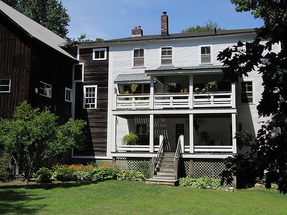 This small New England village home has the charm and character one would hope for in an 1850's period home without the need for upgrades. The spacious main rooms flow one to the other very well and open onto a large rear covered porch and deck that overlooks the large rear yard, the river views and sounds. The old features and details remain, but the kitchen and baths are brought up to today's standards and style. The large barn and old butcher shop are waiting for one's imagination to give it a new life. The lawn and grounds are ready for enjoyment as well. This is truly a move-in ready home. This village is located between Brattleboro and Mount Snow and the home of many artists.