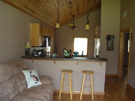 Terrific hunting camp backs up to the WMA for abundant game and wild life. Cabin complete with new appliances, new covered deck, new vinyl siding, 2 bedrooms and a sleeping loft. There is a natural spring-fed stream where the deer hang out during the day;at dusk they walk up to the feeders at the cabin. Lots of hardwoods, great pond site, very private @ end of the road. Room to add Bigger house