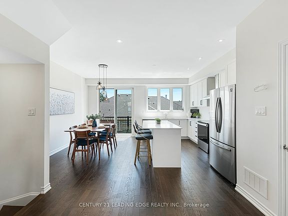 NOT HOLDING FOR OFFERS!! Get ready to fall in love with this bright townhome situated right off Main Street. Enjoy open concept living at its finest in this stunning 2200 sq ft Hunter model(as per builder). The second floor offers 10 ft smooth ceilings with 2 walk-outs, a large eat-in kitchen with upgraded cabinetry, breakfast bar/island, stainless steel appliances and quartz counter tops, an additional dining area and spacious living room. For additional living space retreat to the ground floor family room which boasts yet another walk-out. Or, as a secondary option, use this space as a 4th bedroom. The primary bedroom overlooks the backyard and features a walk-in closet and 3-pc ensuite. Flat ceilings and hardwood flooring throughout the home! Don't miss the opportunity to see this home.