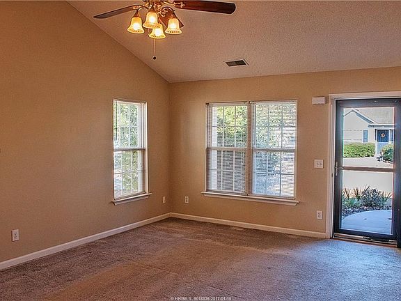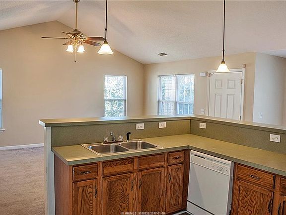 SANDY POINTE: 3 Bedroom, 2 Bath home with open floor plan and vaulted ceilings. Kitchen with breakfast bar and pantry; large dining area. Great Room has 4 windows offering natural-light, ceiling fan with light kit and vaulted ceilings. ENORMOUS Master Bedroom can accommodate a seating area along with king-sized bed. LARGE closets! Enjoy a fenced in backyard along with a great side paver patio. Great Room, Dining, Kitchen and Master Suite freshly painted. Centrally located in Bluffton; close to restaurants, theaters & shopping. Community Pool and Playground. No transfer fee. POA fees $650/year